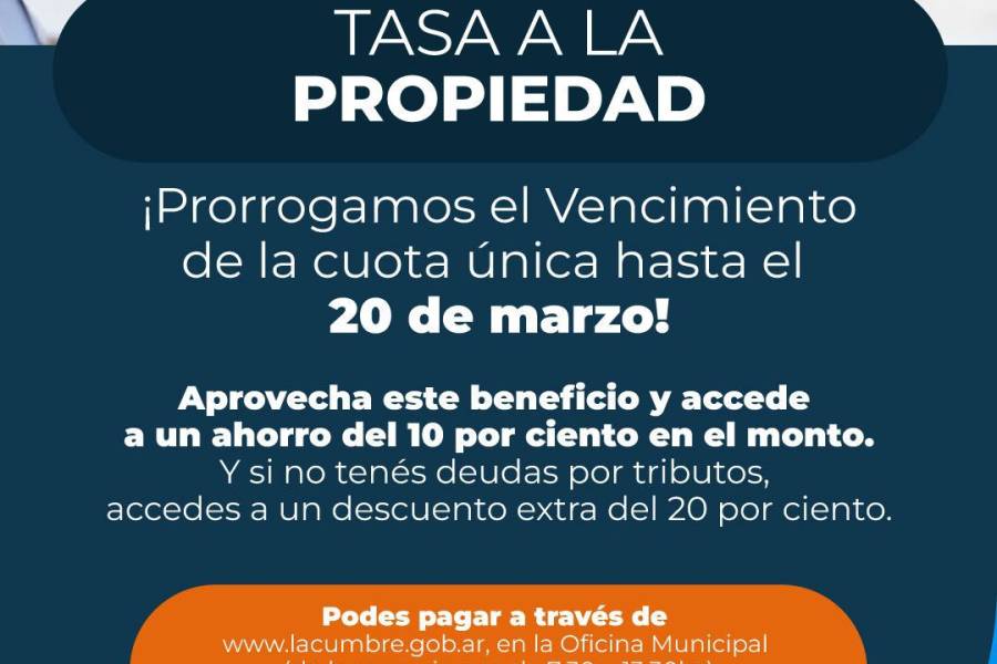 La Cumbre: Extención del vencimiento del pago a la tasa a la propiedad